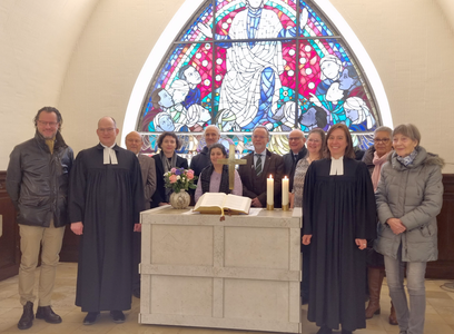 Als letzter Redner erinnerte Pfarrer im Ruhestand Hans-Ulrich Carl in einigen kurzen künstlerisch-theologischen Betrachtungen daran, dass die Heilige Schrift im Mittelpunkt des Gottesdienstes steht, deshalb stehe die Bibel auf dem Altar. „Dieser wird dadurch heilig, dass aus dem Buch, das auf ihm liegt, Gott zu uns spricht“.