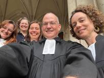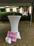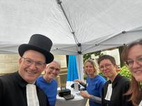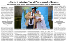 Die Stadtkirche in Baden-Baden war festlich geschmückt und sechs Pfarrer:innen und Diakon:innen erwarteten die Brautpaare. Das Team der Stadtranderholung des Diakonischen Werkes hatte eine Fotobox aufgebaut, damit die Brautpaare ein Erinnerungsfoto mitnehmen konnten. Älteste der Kirchengemeinde Baden-Baden hatten eine Sektbar aufgebaut, wo nach den Trauungen angestoßen werden konnte. Dazu stand Glitzer bereit an der Segensstation.