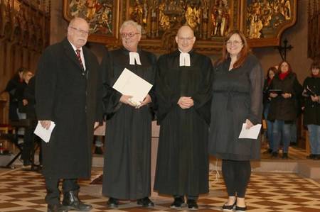 v.l.n.r.: Kirchenältester Helmut Huber, Pfarrer Jürgen Knöbl, Dekan Christian Link, Diakonin Miriam Schönle